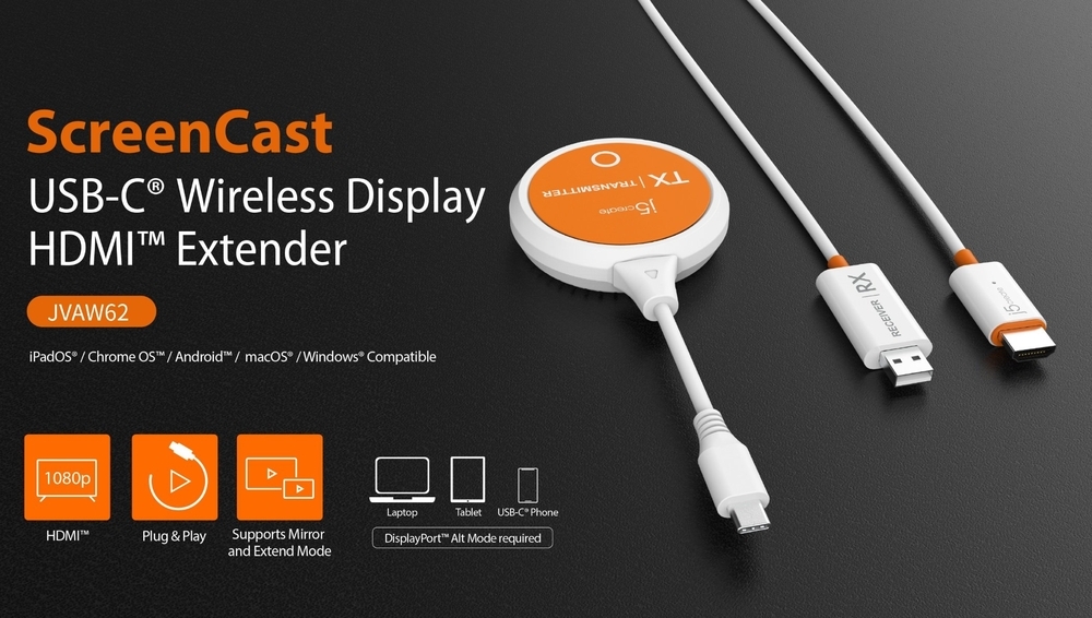 Supports multiple wireless display standards so you can wirelessly display content from your cast-compatible device without using the USB-C® transmitter.