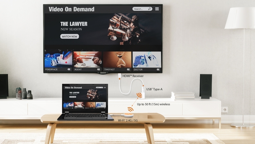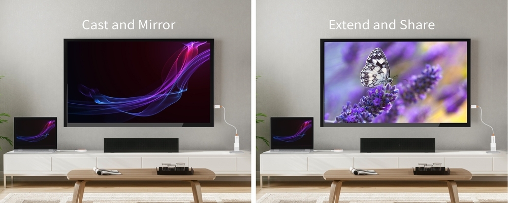 Eliminate the need and expense of running unsightly cables by wirelessly sending what’s on your laptop, tablet, or mobile phone to your HDTV.