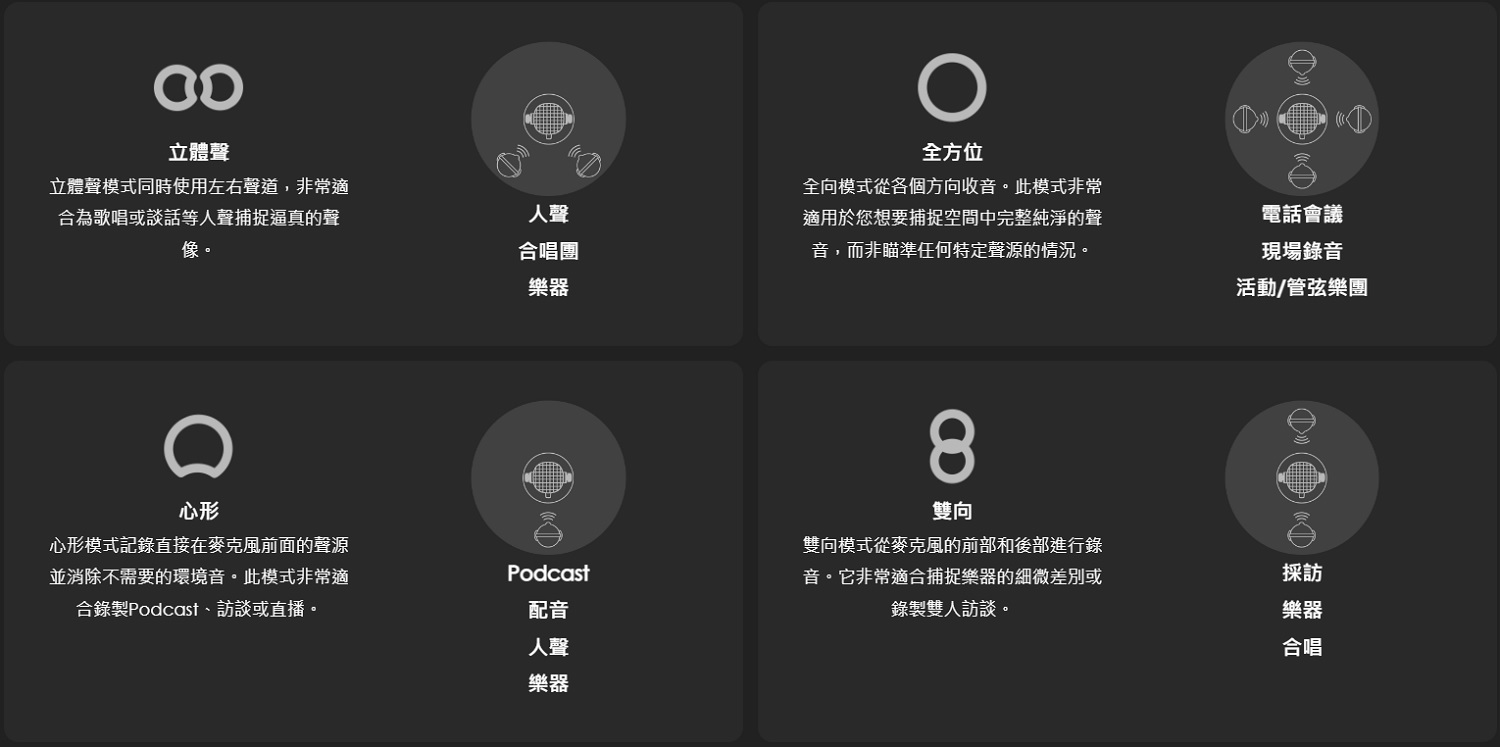 | Pickup Pattern | Stereo / Unidirectional / Omnidirectional / Bidirectional |