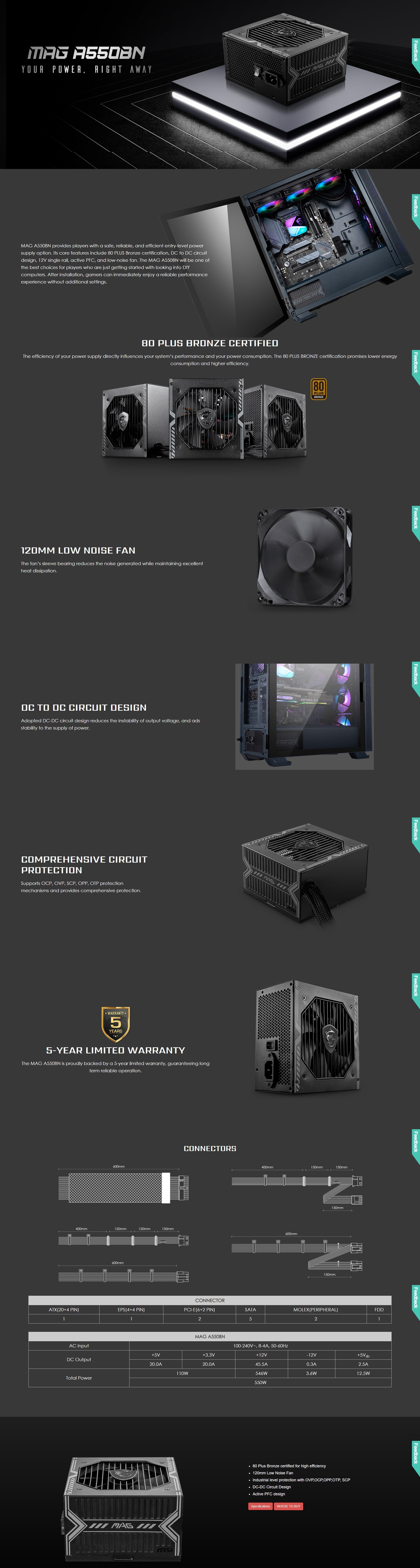 MSI POWER SUPPLY MAG A550BN 550W Bronze (PS-MAA55BN)