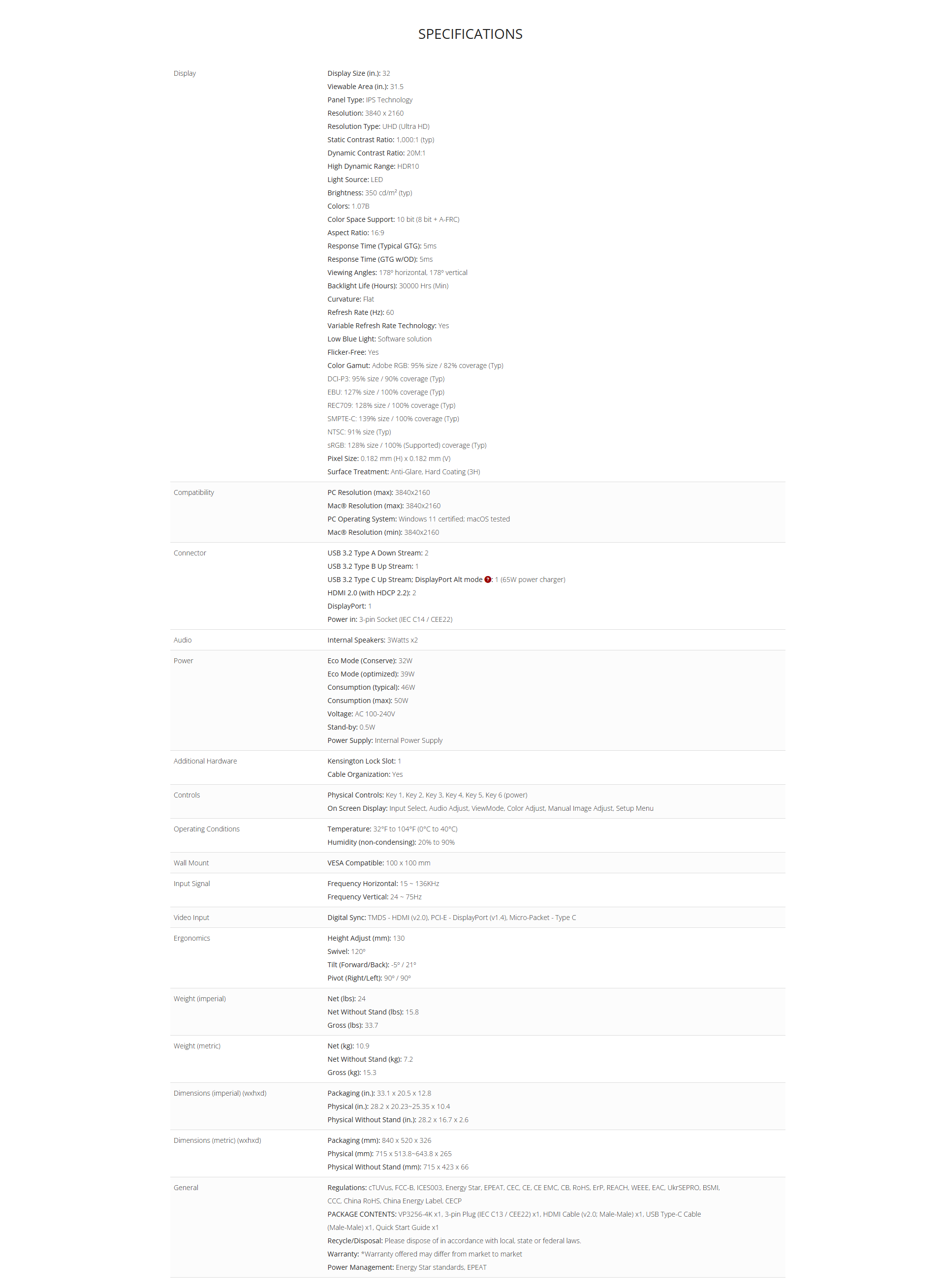 HDMI (2.0) x 2, DP (1.4) x 1, USB Type-C x 1 (PD 60W)