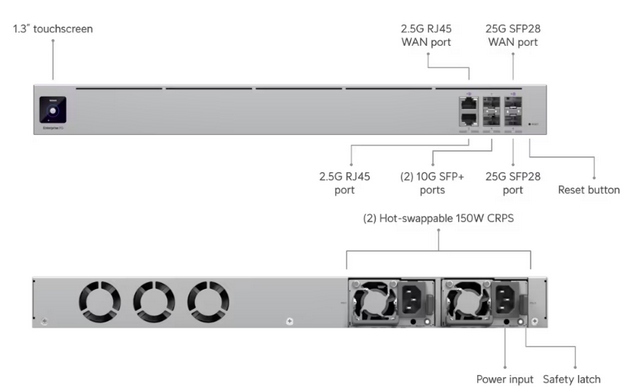 25G Cloud Gateway with 500+ UniFi device / 5,000+ client support, 12.5 Gbps IPS routing, and complete high availability.