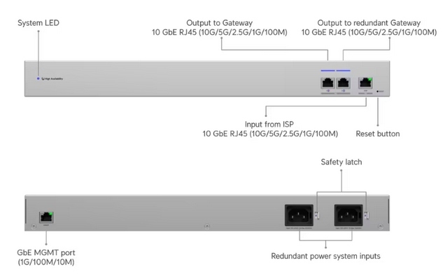 10 GbE WAN Switch linking two Shadow Mode High Availability UniFi Gateways to a single ISP.