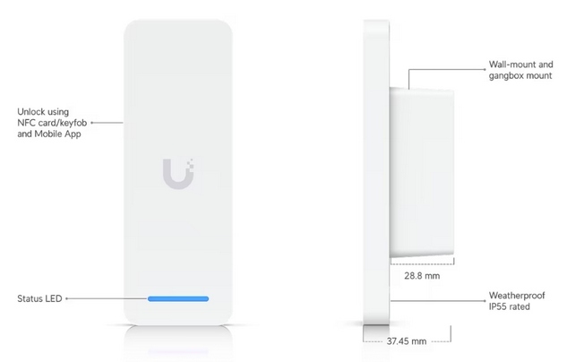 An access reader with a built-in hub for complete, single-door entry control from one device.