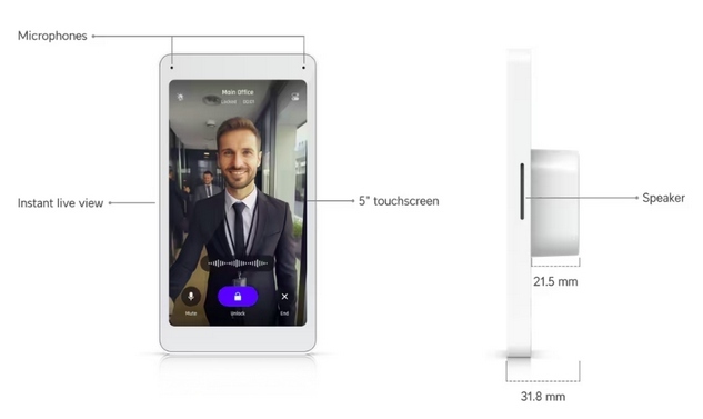 Display that works with Intercom and Reader Pro for visitor screening and remote access control.