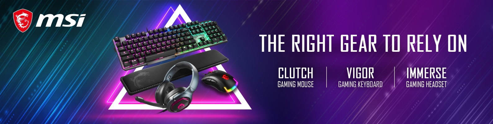 MSI 電競週邊 (VIGOR 鍵盤、CLUTCH 滑鼠、IMMERSE 耳機、AGILITY 滑鼠墊)
