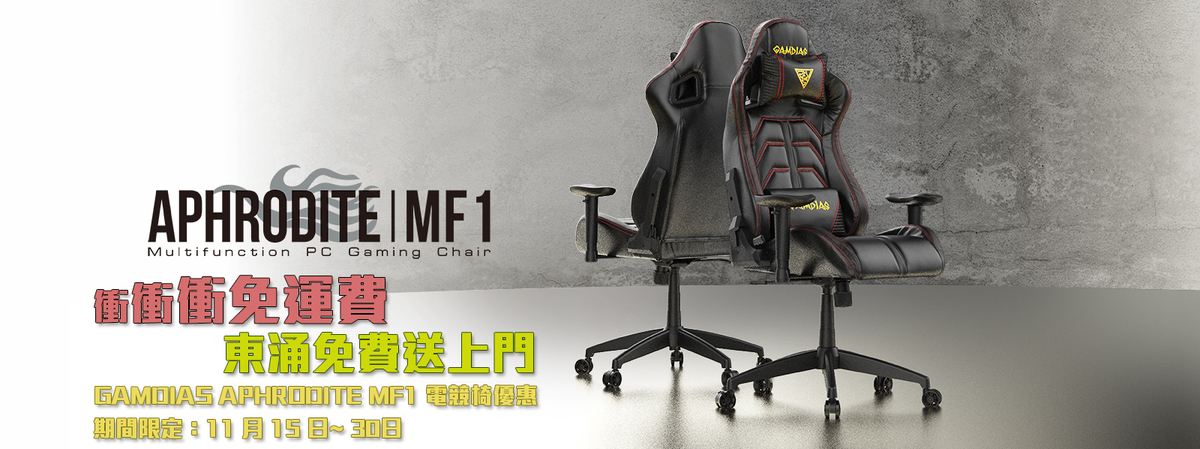 住東涌既朋友都知道,平時買大件傢俱送貨一定要另外加錢。而為了照顧偏遠地區的朋友,Gamdias 特別推出優惠,只要係限定期間落單,無論係經銷商或者網上商店購買 GAMDIAS APHRODITE MF1 電競椅,都可以免費送費至東涌,絕無任何附加收費,想買電競椅嘅朋友就把握機會啦!