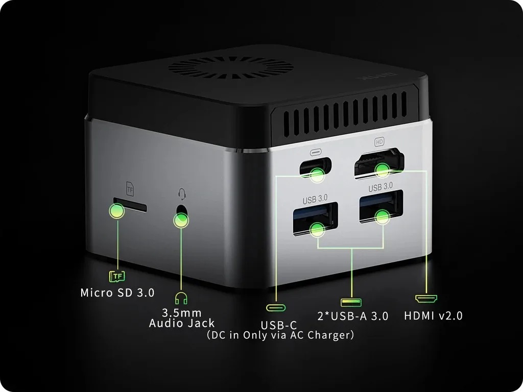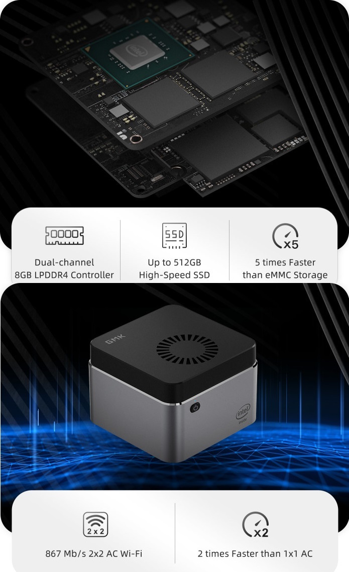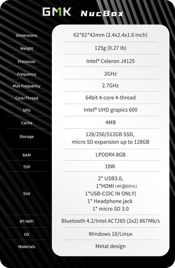 它搭載TDP為10 W的Intel Celeron J4125處理器,具有4個處理器核心,