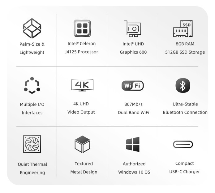 ↓ NucBox採用4核4緒的Intel Celeron J4125處理器,最高Boost時脈可達2.7GHz。↓