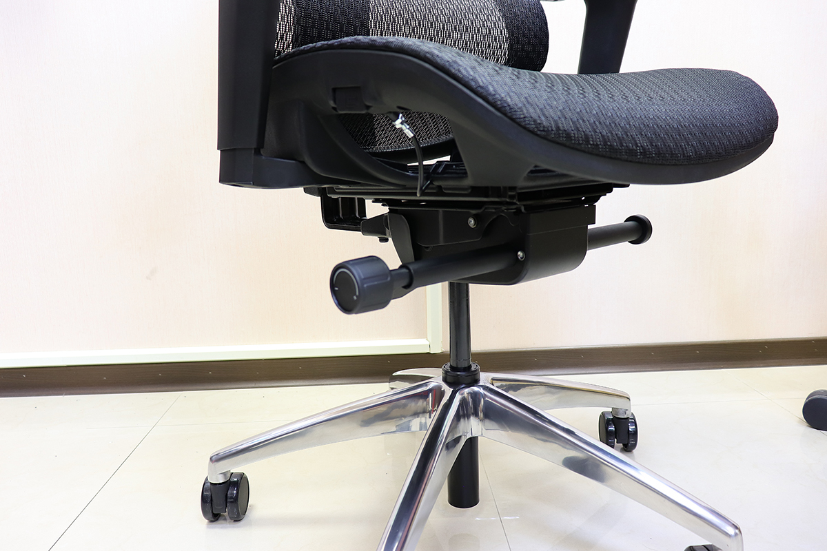 包含 T07 在內,全系列托盤也採用多功能性金屬安全托盤並配上高規格防爆氣壓棒,內建減震機構,與搖曳切換功能比起一般電腦椅更加平穩,右側旋鈕為椅背後仰鬆緊調整,左側旋鈕為後仰鎖定。同時無論是 T07、T05、T05 Plus 還是 T06系列,iRocks 都堅持採用金屬椅腳以及耐用椅輪。