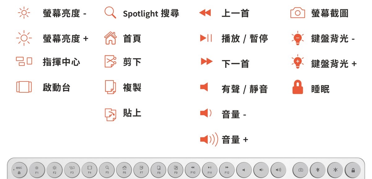 (非蘋果系統部份功能鍵或會用不到)