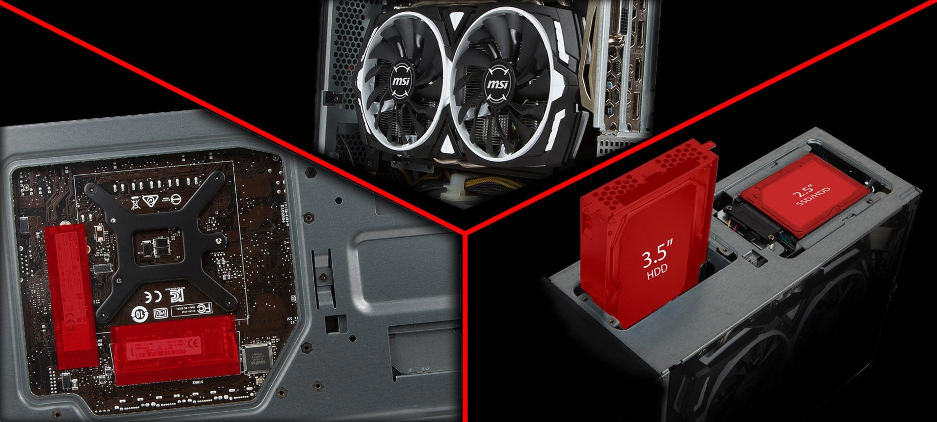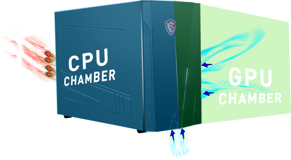 為了獲得傑出的效能表現,微星電競桌機擁有獨家設計的寂靜風暴冷卻系統, 寂靜風暴冷卻系統擁有分離氣室,單獨處理系統中的不同零組件, 獨特的設計可確保系統的溫度保持最佳的狀態。