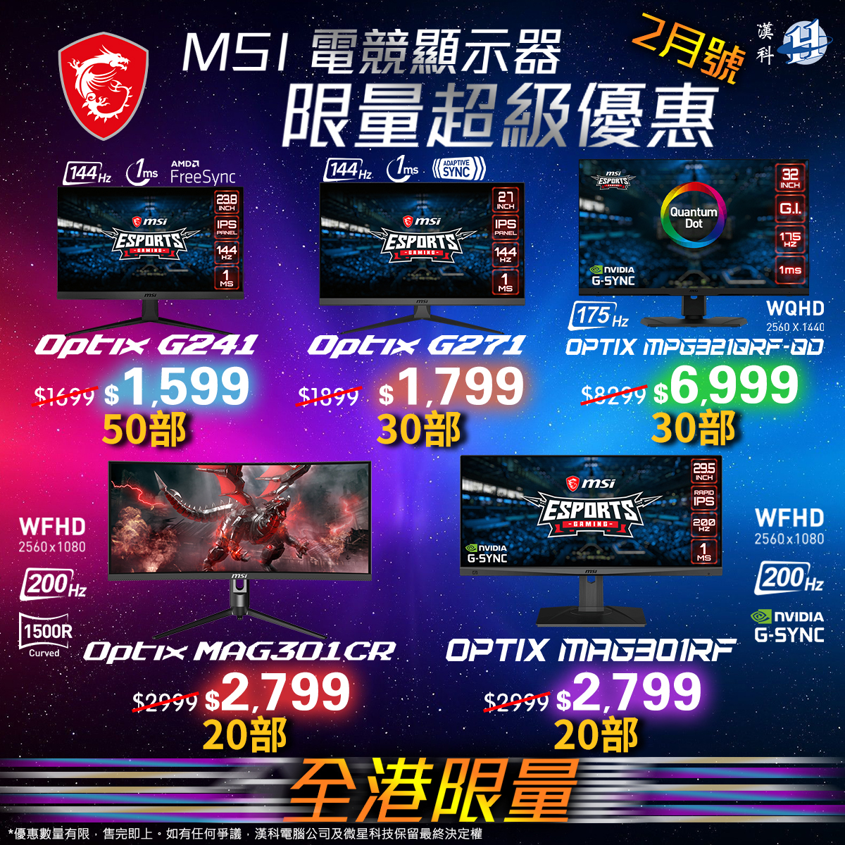 於 2022年 (2月21日 - 3月4日) 期間 , 可於合作指定經銷商 , 以至抵優惠價購買MSI限定優惠型號。