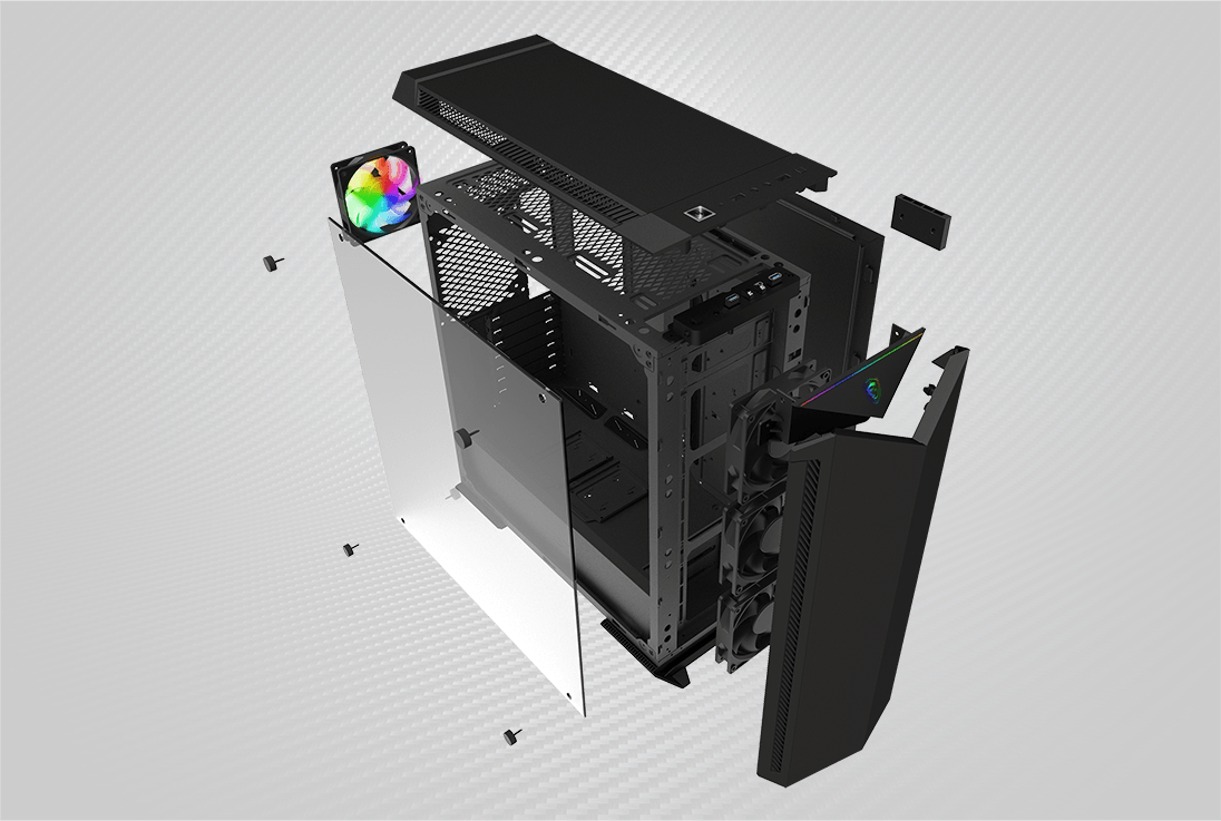 MSI MPG GUNGNIR 100 擁有大容量儲存設備的空間與方便整機的內部配備,多種散熱方式可供選擇,與透明的鋼化玻璃面板,打造簡約氣質與完美的配置。