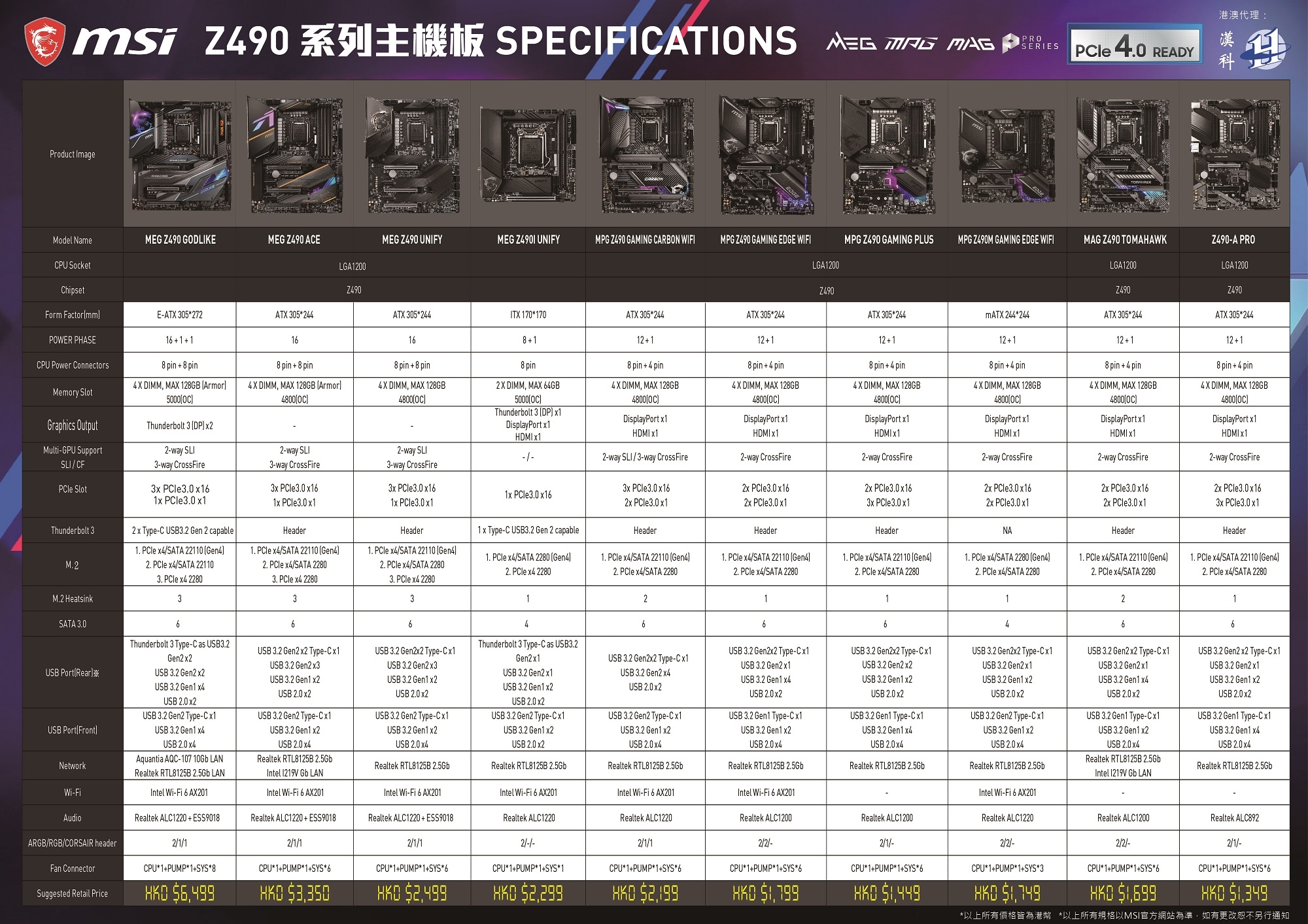 MSI 全線Z490系列現已登場,立即選購體驗最強效能!