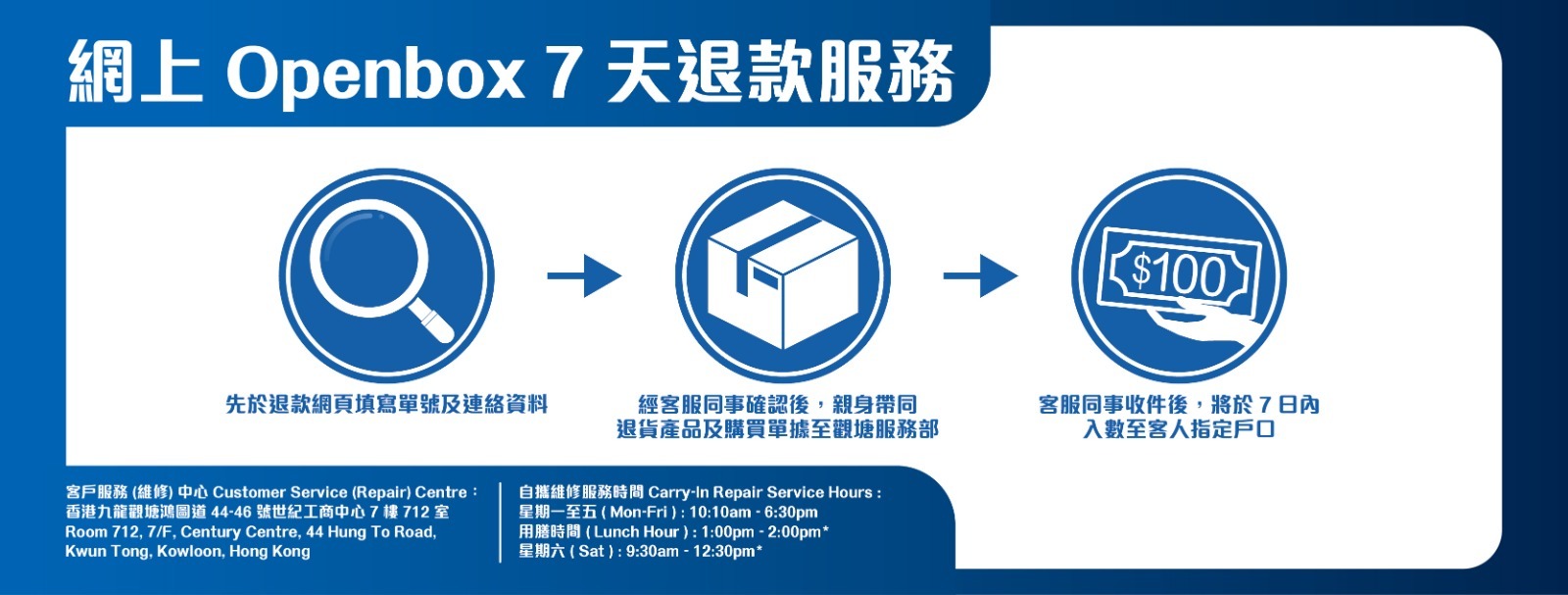 所有開箱產品均設有7日退款保證,等你安心選購。*每款開箱產品亦可能有不同的保用期,請於購買前留意該產品之保用期。
