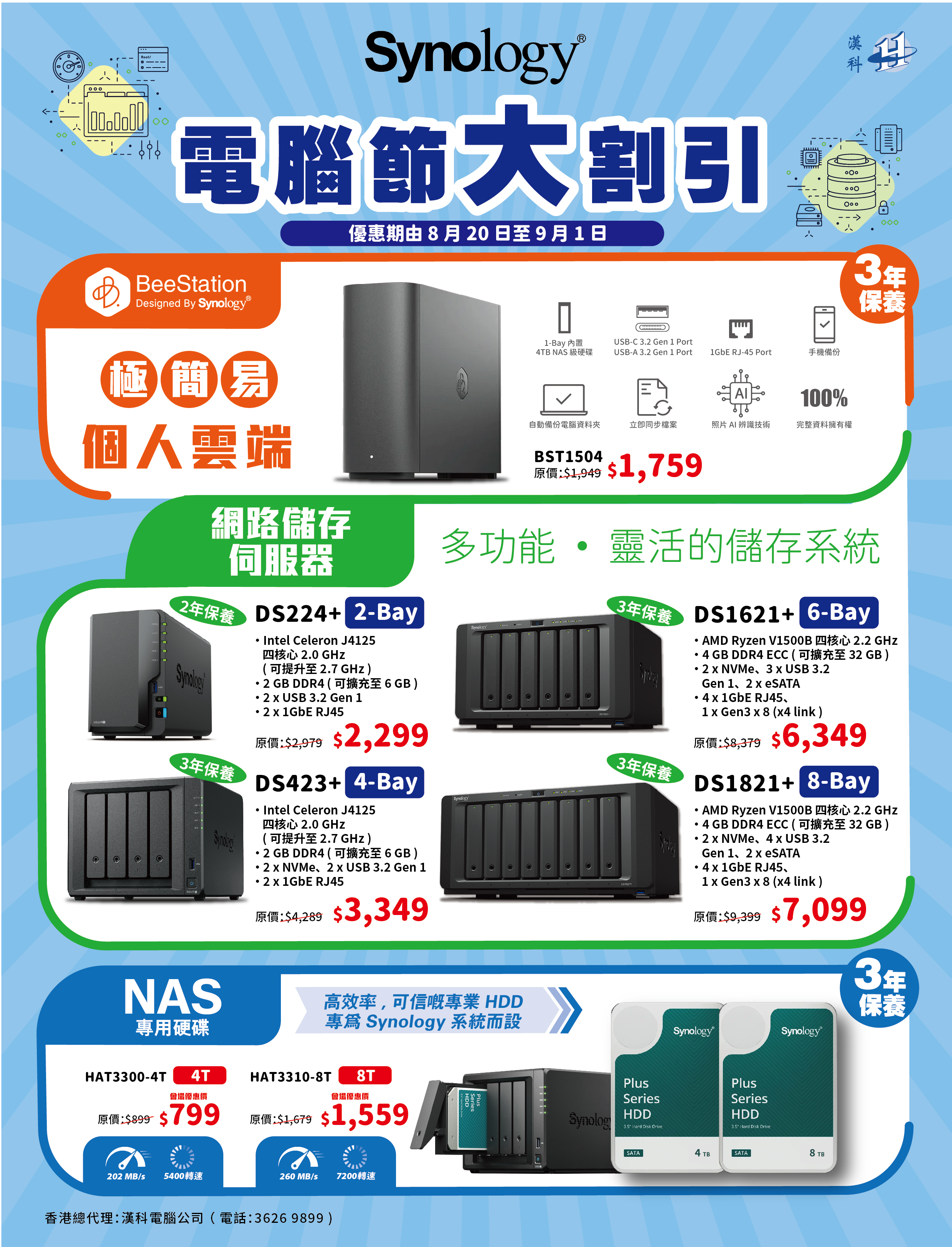 Synology 官方零售商購買由漢科電腦代理之產品均有漢科保養標貼。 如 Synology 產品上缺少以下保養標貼,均非 Synology 官方零售商,其售賣之非 Synology 官方零售版本。
