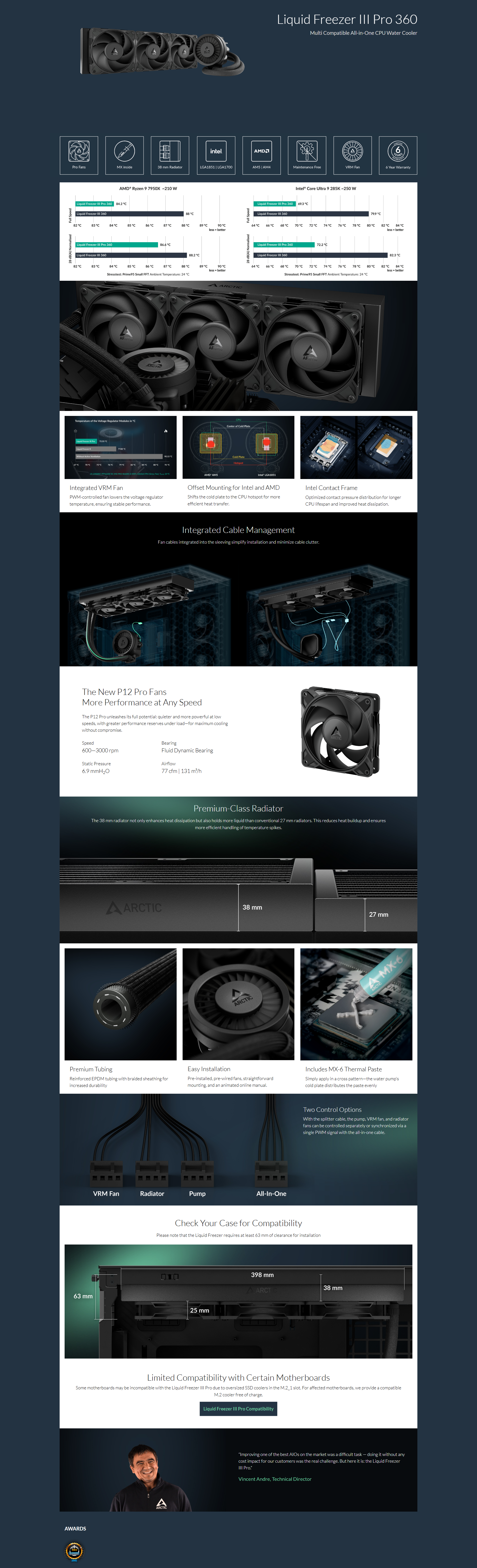 Premium-Class Radiator, The 38 mm radiator not only enhances heat dissipation but also holds more liquid than conventional 27 mm
