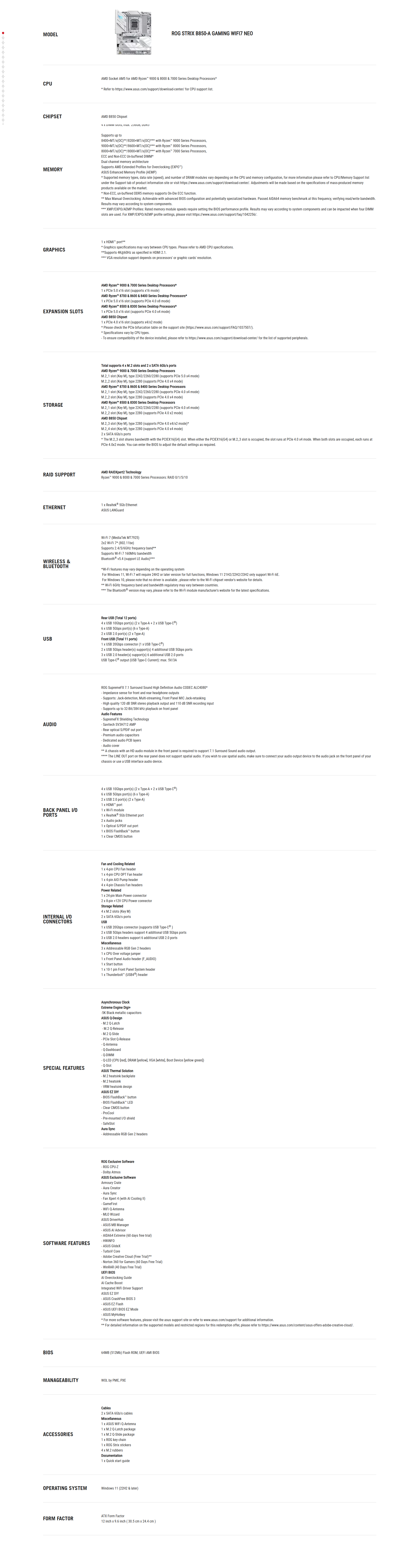The ROG STRIX B850-A GAMING WIFI7 Neo motherboard features a sleek white PCB and support for AMD Ryzen™ 9000, 8000, 7000 Series processors, delivering smarter performance and faster connectivity for gaming, creation, and everyday use.