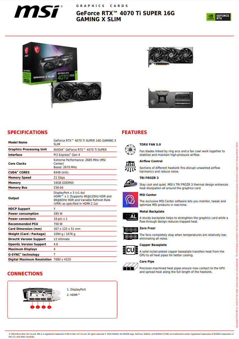 NVIDIA® GeForce RTX™ 4070 Ti Super