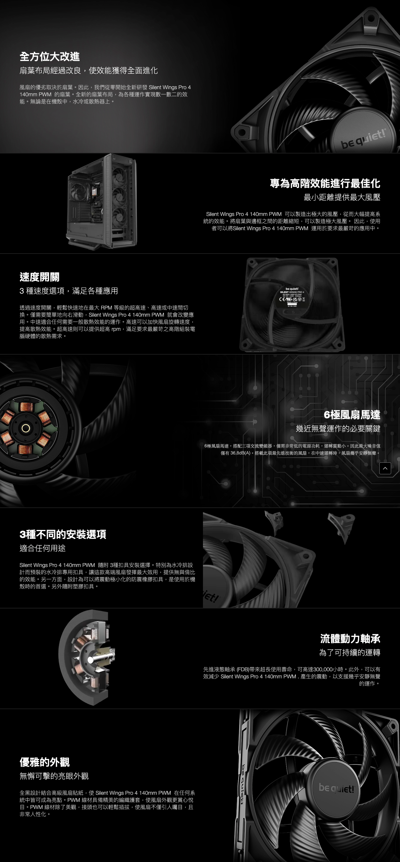 Silent Wings Pro 4 140mm PWM White 是 be quiet! 最先進、最強勁且多功能的風扇。
