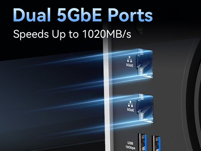 Dual 5GbE ports deliver blazing speeds and maxed-out performance. Supporting multiple Bond modes and SMB Multichannel, they achieve sequential write speeds up to 1020MB/s and 4K random read/write speeds of 280K IOPS. Ideal for multi-user offices and video editing scenarios.