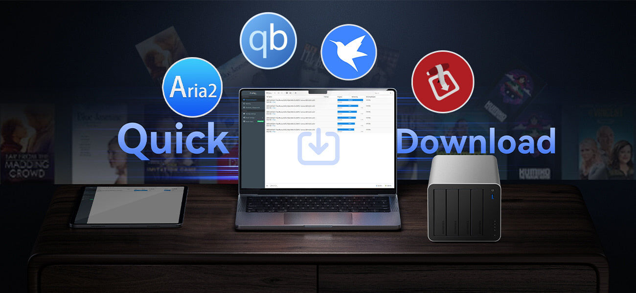 The F4-425 Plus features 4K video hardware decoding and supports media server apps like Plex, Emby, and Jellyfin for multi-screen streaming to phones and TVs. With built-in download tools like Aria2 and Xunlei, it lets you easily acquire, manage, and enjoy your media. All in one powerful, streamlined hub.
