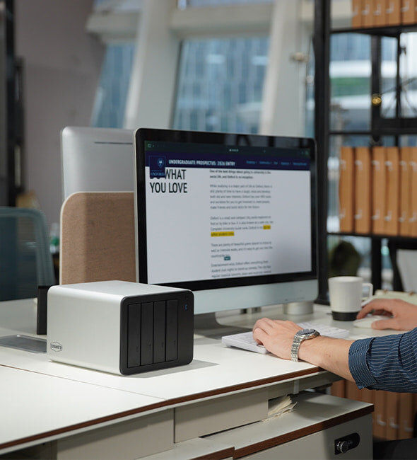 The F4-425 Plus delivers massive expandable storage, supporting four HDDs (30TB/drive) and three M.2 SSDs (8TB/drive) for a total capacity of 144TB. Its three M.2 slots can be configured as a RAID 5 array for both data security and fast performance, while also enabling independent storage pools for HDDs and SSDs. Storage can be further expanded using TerraMaster USB DAS for seamless scalability.