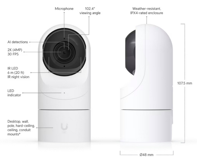 Unleash maximum security flexibility with the Ubiquiti UniFi G5 Flex Indoor & Outdoor Ceiling/Wall/Desh Dome IP Camera, a feature-rich 2K PoE camera that thrives in various indoor and outdoor environments.  This versatile camera boasts exceptional video quality, a weatherproof build, and multiple mounting options, making it the perfect choice for comprehensive property surveillance wherever you need it.