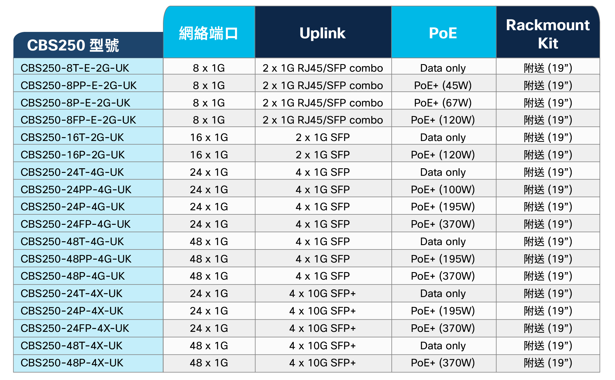 下一代經濟實惠的智能交換機,結合了強大的效能、可靠性及一套完整的網絡功能,打造穩固的企業網絡。CBS250 系列交換機提供靈活的管理選項、全面的安全功能和 Layer 3 靜態路由功能,遠遠超過非網管或消費級交換機,而且成本低於全網管交換機。當您需要可靠的解決方案來共享線上資源,並將電腦、手機和無線存取點連接起來,Cisco Business 250 系列智能交換機提供一個性價比極高的選擇。