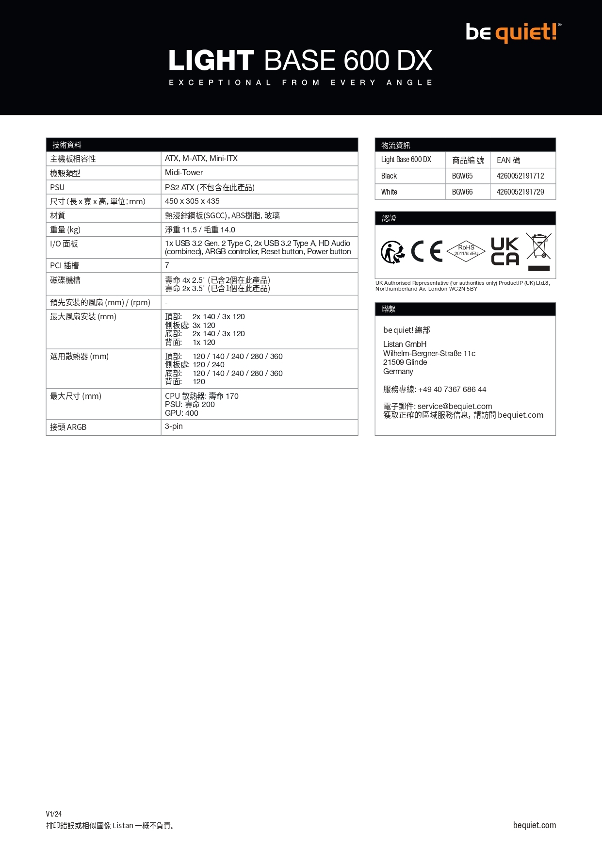 Light Base 600 DX Black 為幾乎所有可用電腦組件做好準備,讓它成為您的創意樂園。