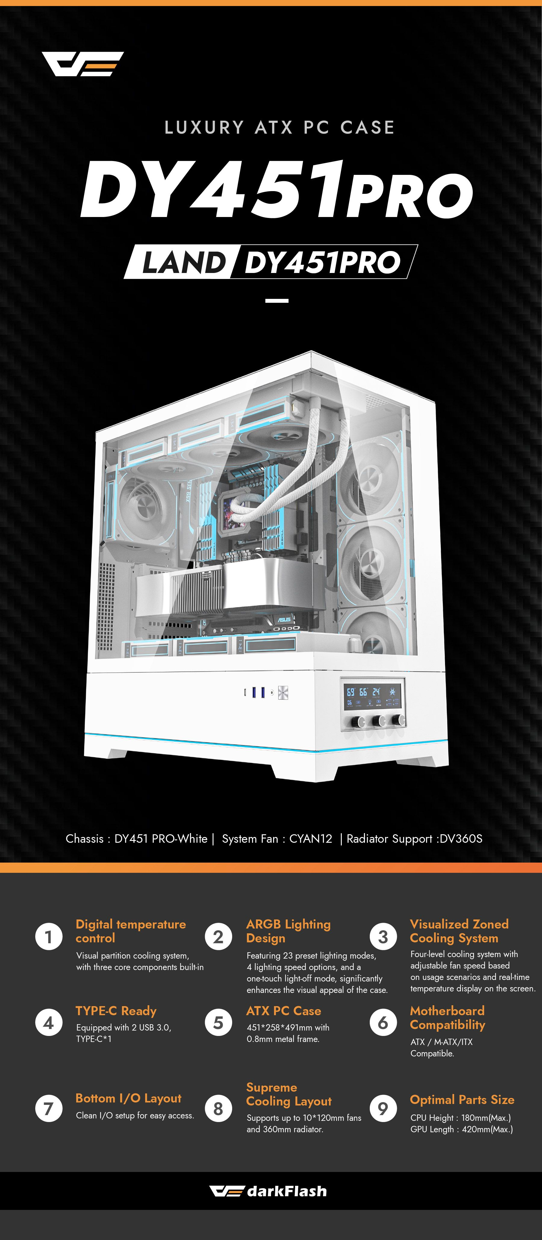 darkFlash DY451 Pro ATX PC Case Black 全景式機殼 (CA-DY451B)