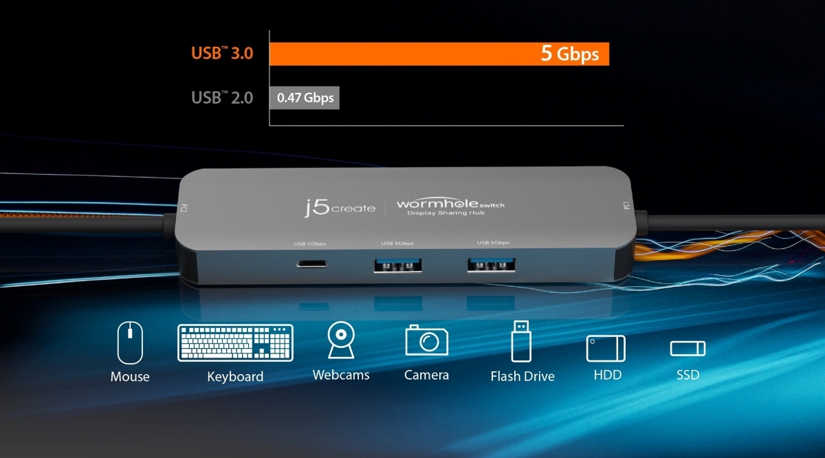 ▸ 內置 USB 分插器功能:2 x USB-A & 1 x USB-C