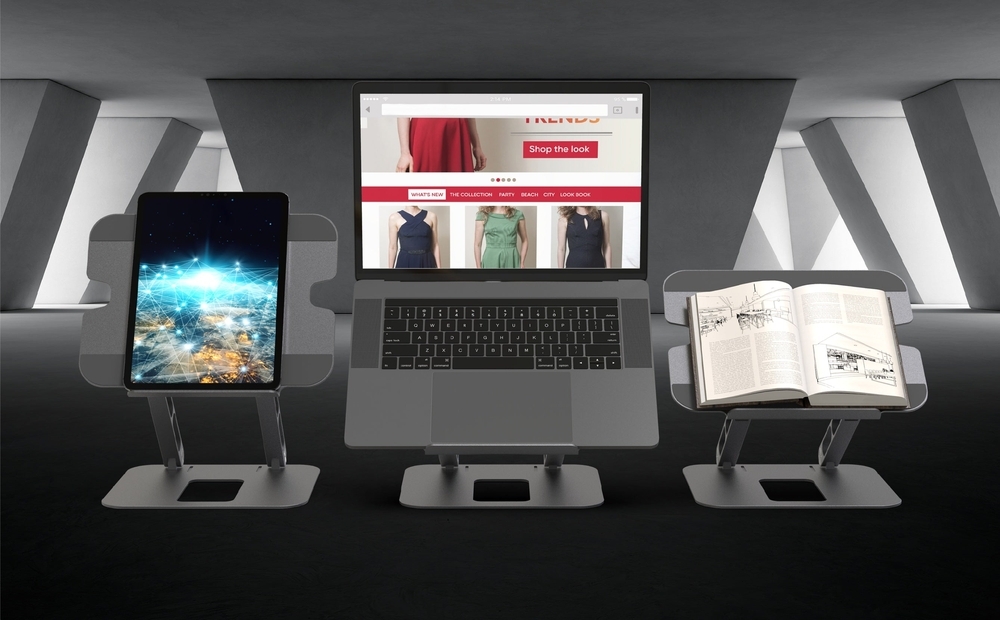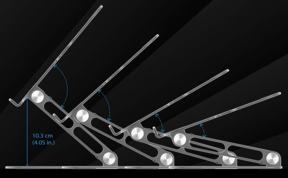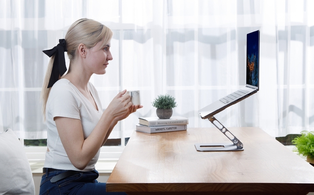 ▸ 將筆電螢幕提升至眼睛水平,幫助減輕眼部疲勞和改善坐姿