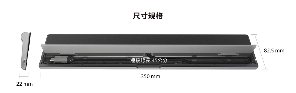 | 產品尺寸 | 350 (長) x 82.5 (寬) x 22 (高) mm/線長 45cm |
