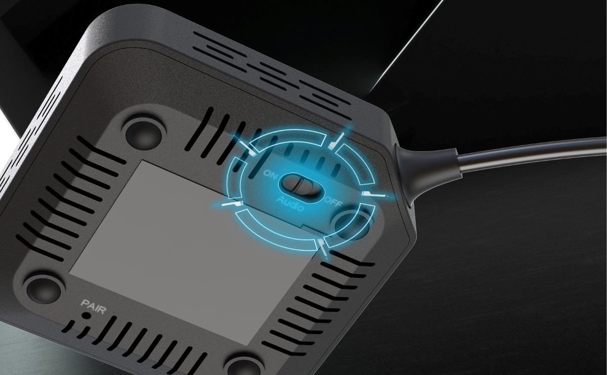 RX│Receiver: Located on the RX device’s bottom side, the "Audio ON/OFF switch" quickly enables or disables audio - Switch to ON: enables audio - Switch to OFF: disables |