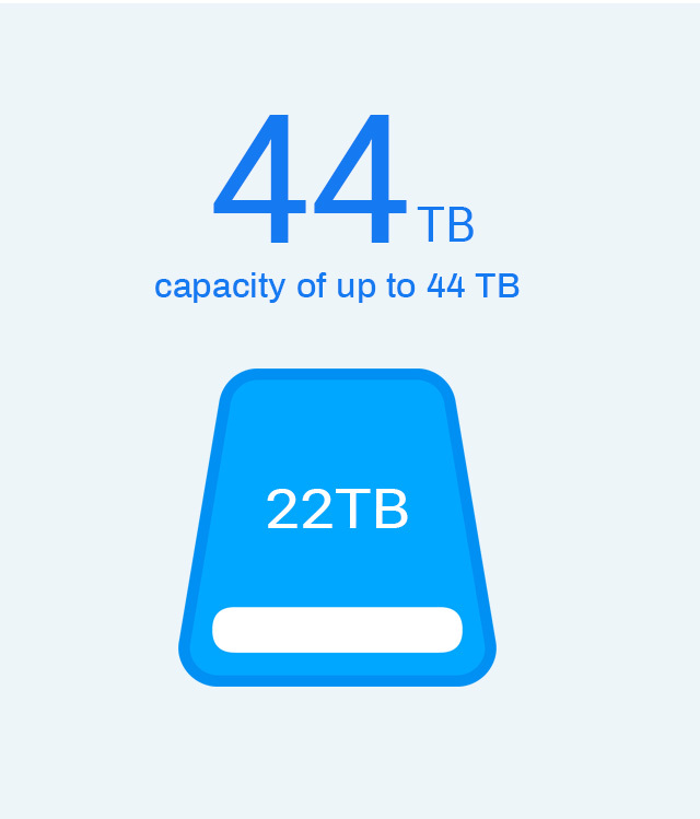 ▸ Supports 2 x SATA HDD/SSD (up to 44TB)