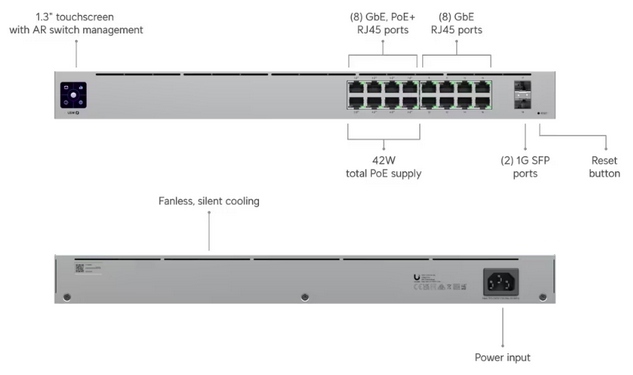 16x 1G RJ45 (8x PoE+)