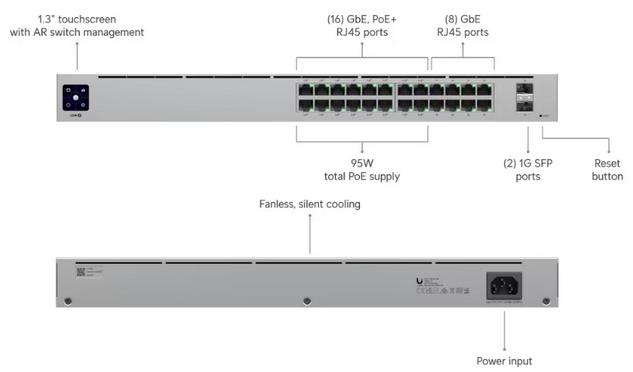 24x 1G RJ45 (16x PoE+)