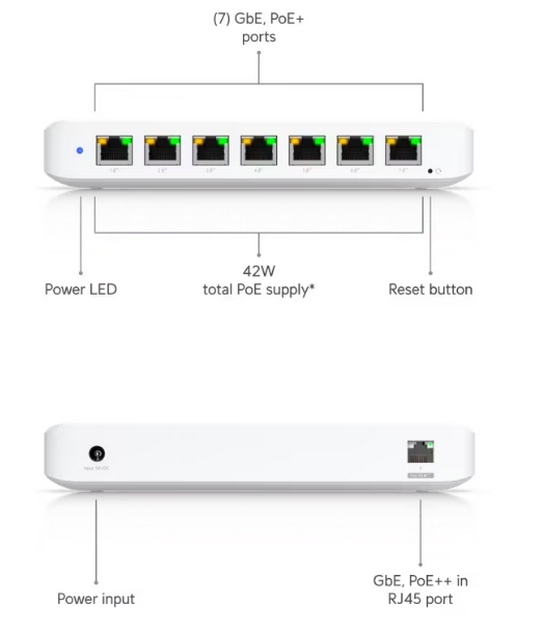 8x 1G Lan (7x PoE+, 1x PoE++)