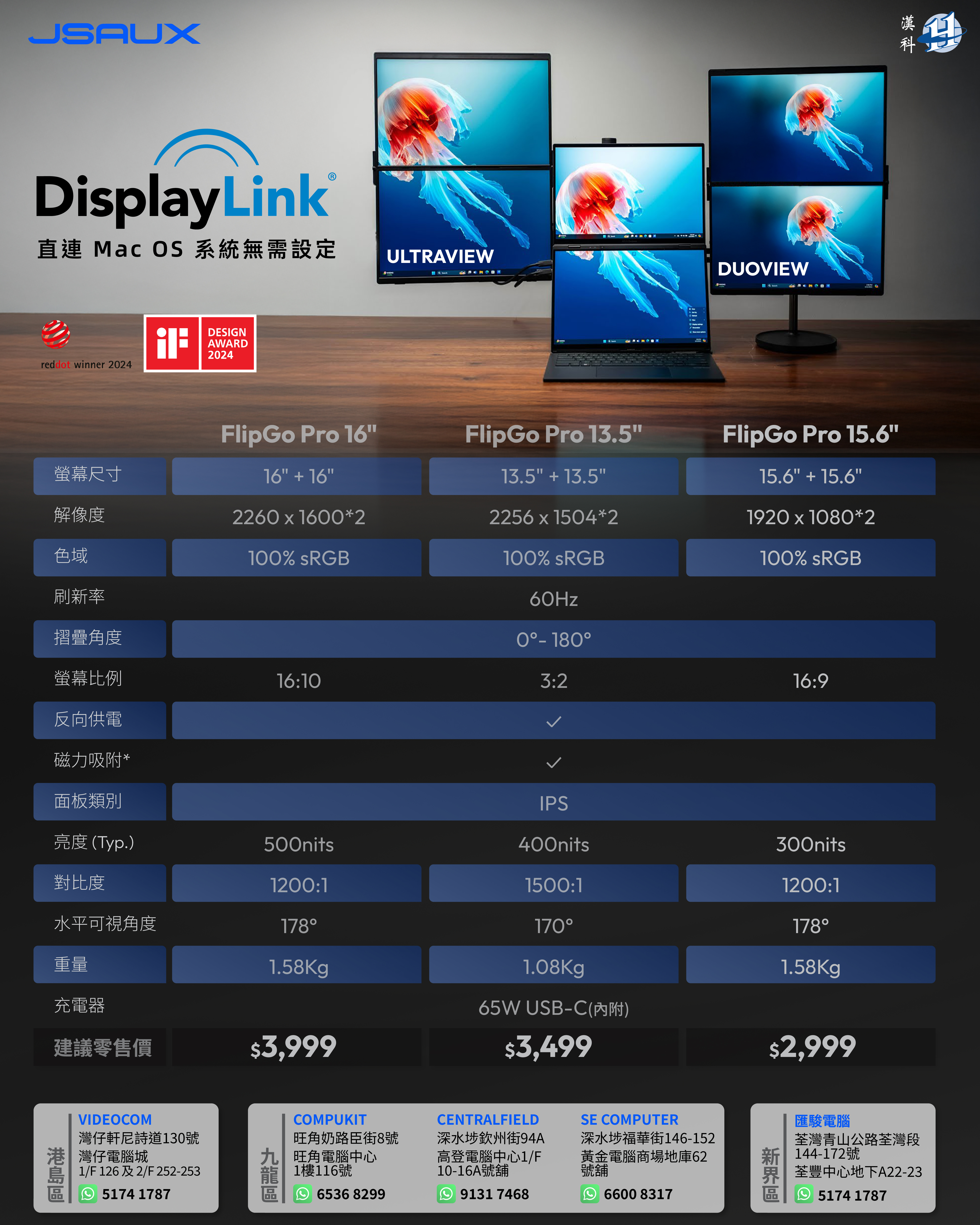 JSAUX FlipGo Pro 16" 攜帶型顯示器 (MO-JG16PB)