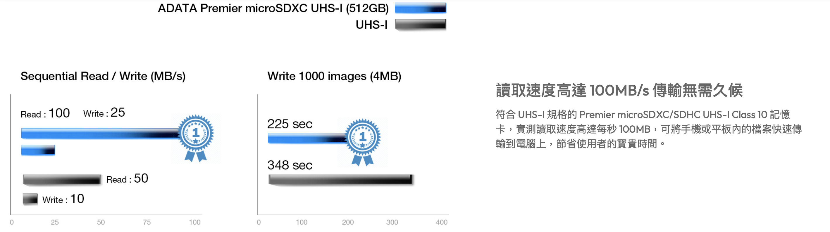 UHS-I Class 10 qualified, data transfer up to 100MB/s