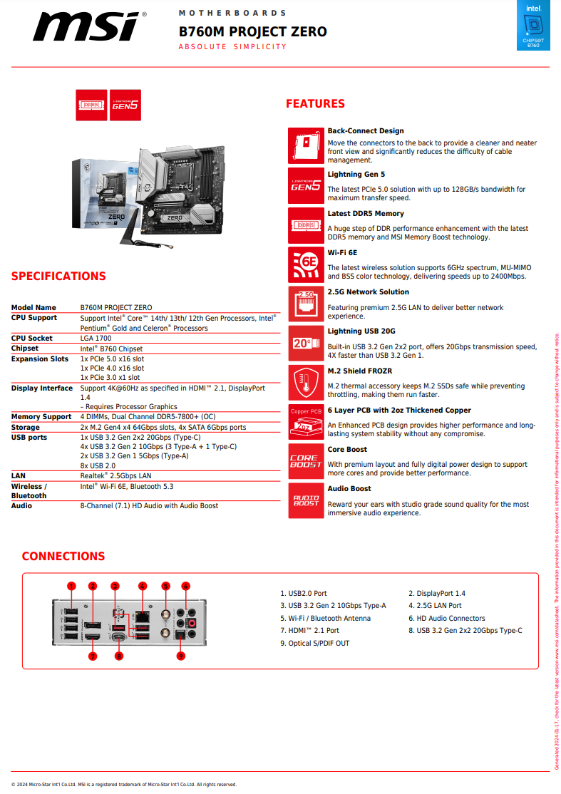 Socket LGA 1700, support 12ᵗʰ/13ᵗʰ/14ᵗʰ gen Intel processors