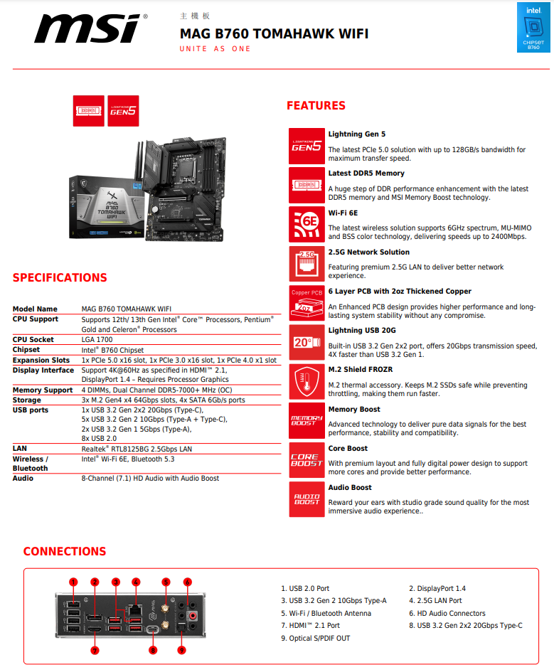 Supports 12ᵗʰ/13ᵗʰ Gen Intel® Processors