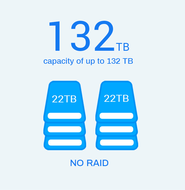 • Maximum Internal Raw Capacity:132TB (22TB drive x 6) (Capacity will vary along with the RAID type)