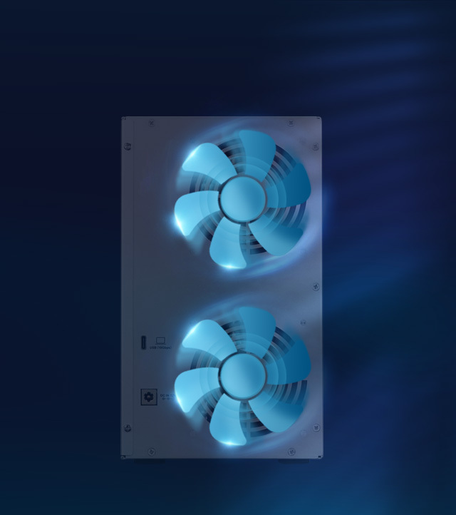 D6-320 adopts an intelligent temperature-controlled and low-noise fan that adjusts its speed automatically based on the temperature of the hard disk to ensure the hard disk to work at the best operating temperature. Furthermore, the internal structure of the device is specially optimized, which not only effectively increases the internal air pressure and reduces the working temperature of the hard disk, but also greatly reduces the resonance between device components and the hard disk. With this feature, D6-320 can maintain satisfactory low noise even under a full-load working environment.