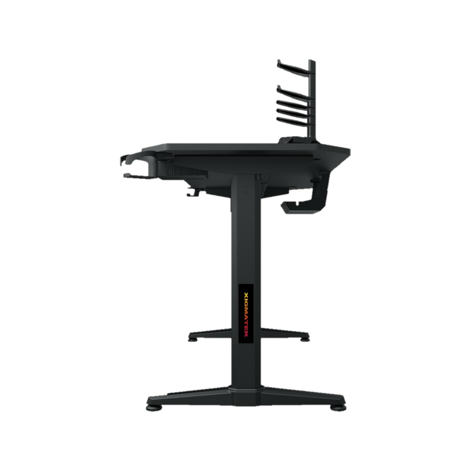 Xigmatek Apex  電動升降電競桌用料實在,支架採用高品質鐵架搭配優雅黑色烤漆,防鏽美觀,加上高強度 P2 SGS 認證的 15mm 厚碳纖維設計桌面,可承重最高達 100 kg